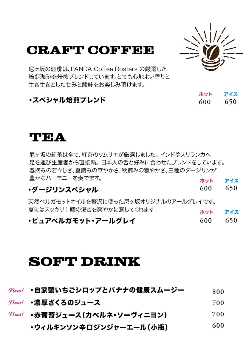 尼ヶ坂の珈琲は、PANDA Coffee Roastersの厳選した高品質珈琲豆を店内で丁寧に焙煎することで心地よい香りときめ細かな泡立ちの美味しいコーヒーをお届けします。